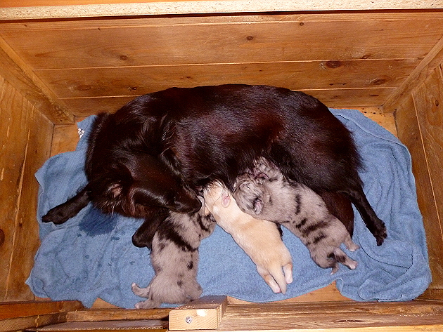 Als erstes zeige ich euch deshalb die Wurfkistenfotos mit Mama Kyara.
