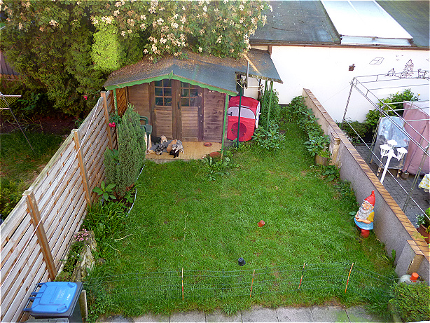 Der “Rasen” äh, ist eher nicht mehr so ganz Rasen, ihn zieren mehrere Versuche, sich nach Japan durchzubuddeln.