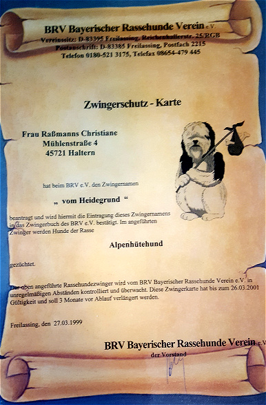links Genehmigung des BRV e.V. für den ersten Wurf des Sheltie Cascaya’s Basti mit Siona